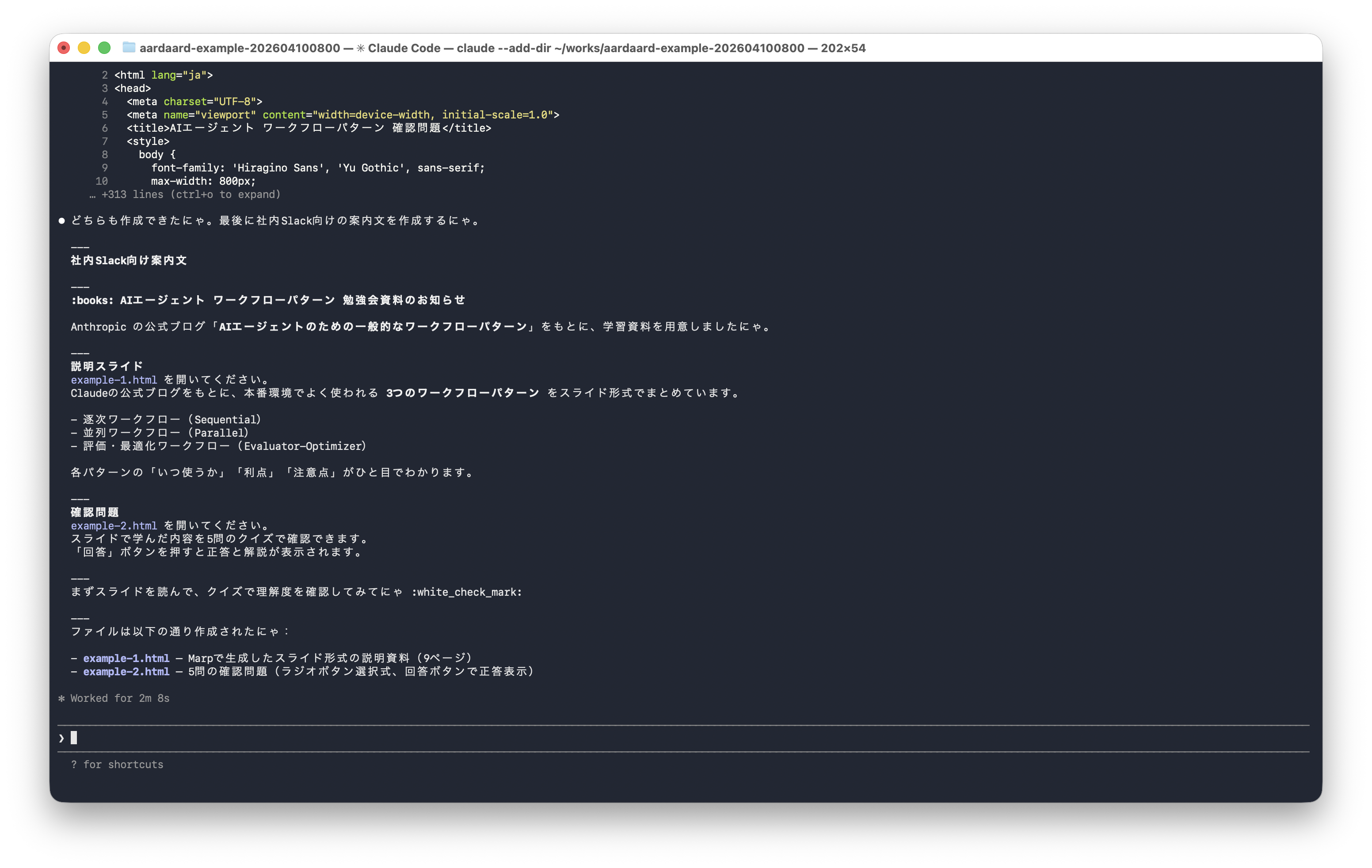 5. 社内 Slack 向けに「説明」と「問題」の案内文を作成